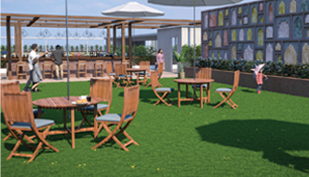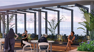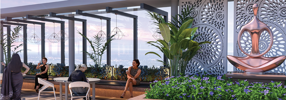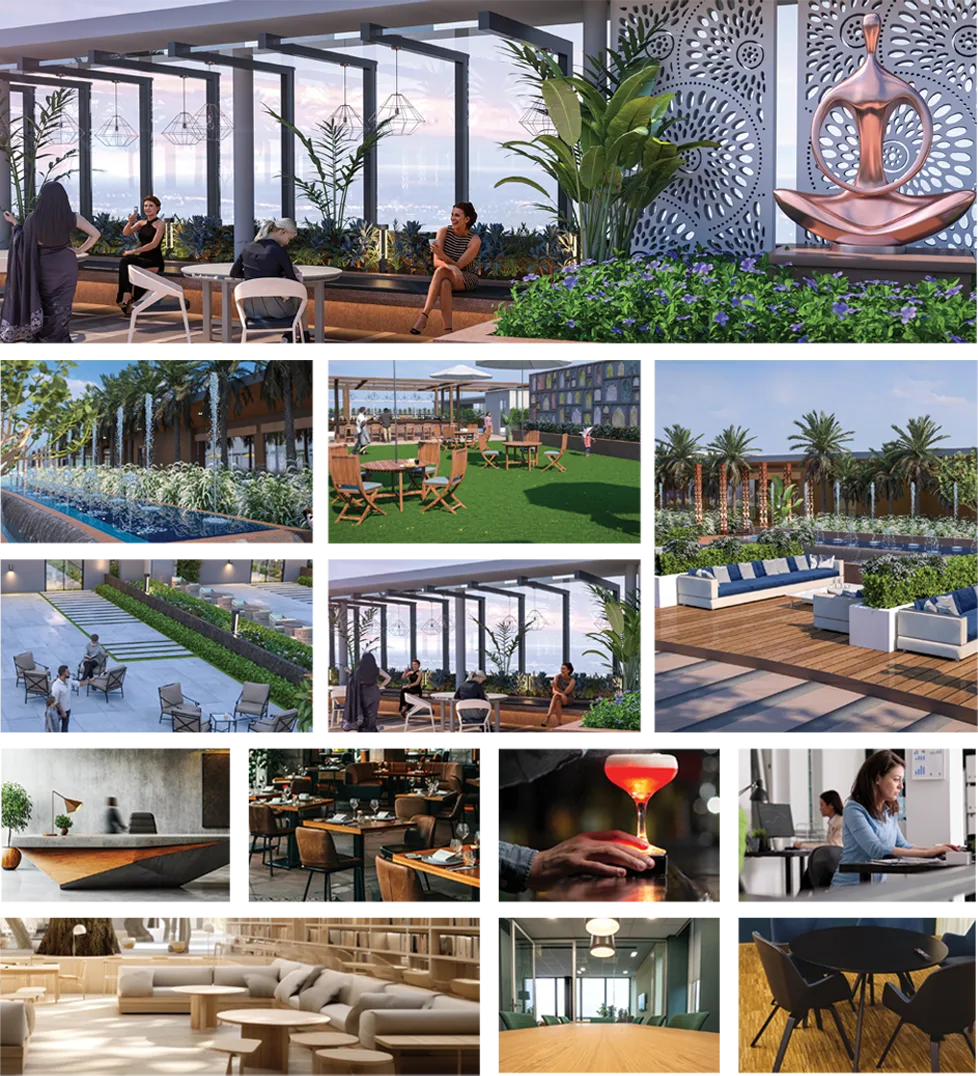 Elevate your Lifestyle at the Rooftop Club, featuring a seamless blend of work and leisure. Enjoy the Tower 9 Terrace with its gym, library, and conference rooms, alongside outdoor seating area. Tower 10 Terrace offers a vibrant restaurant and bar, complemented by a live performance stage and tiered outdoor seating for unforgettable dining experiences, Discover a dynamic space designed for relaxation, collaboration, and entertainment high above the city.